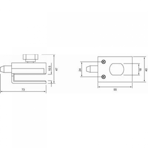 Zasuwka drzwiowa na drzwi szklane, nie wymaga wiercenia otworów w szkle. Zamknięcie na pokrętło. Dostępna w wykonaniu  stal szczotkowana, czarna anoda.